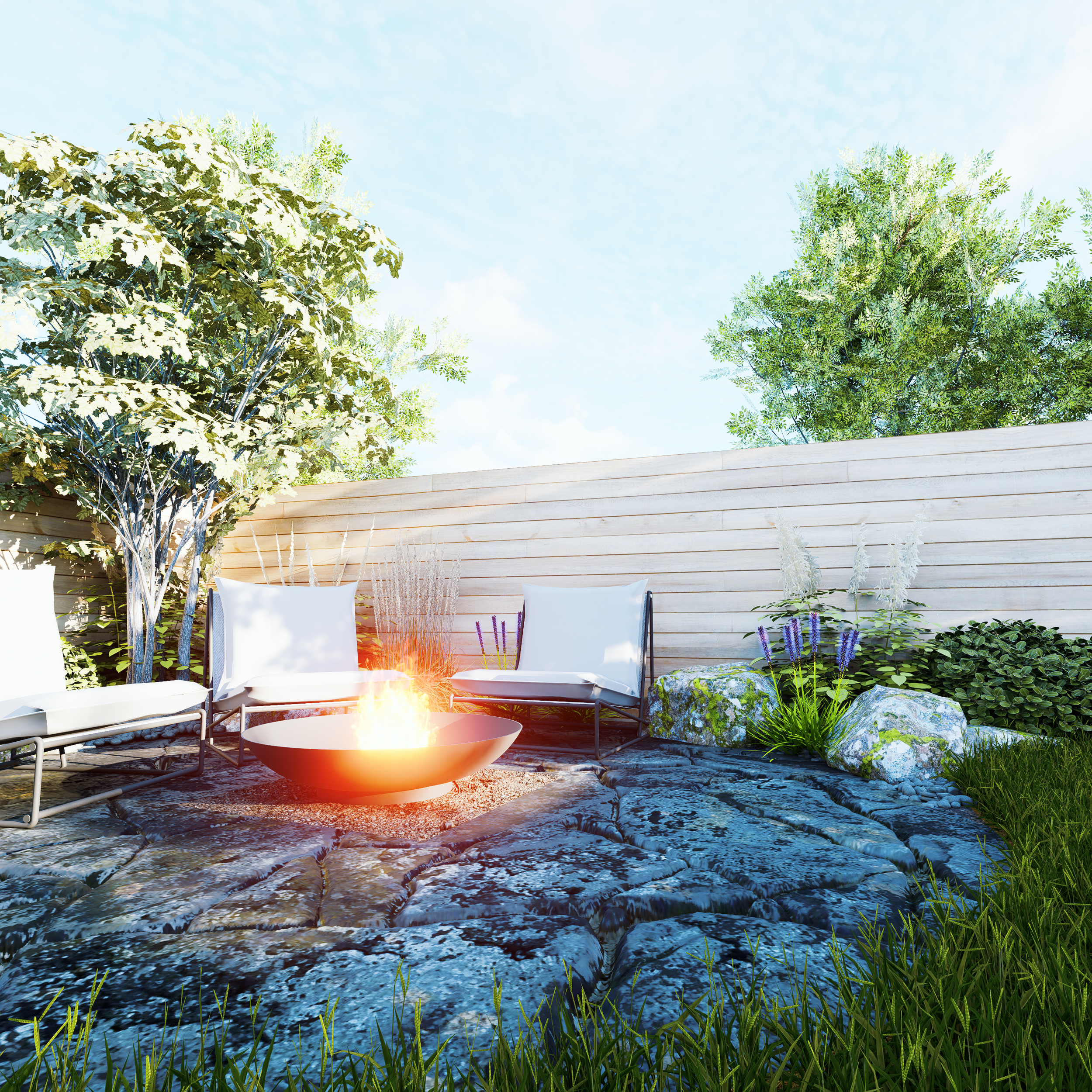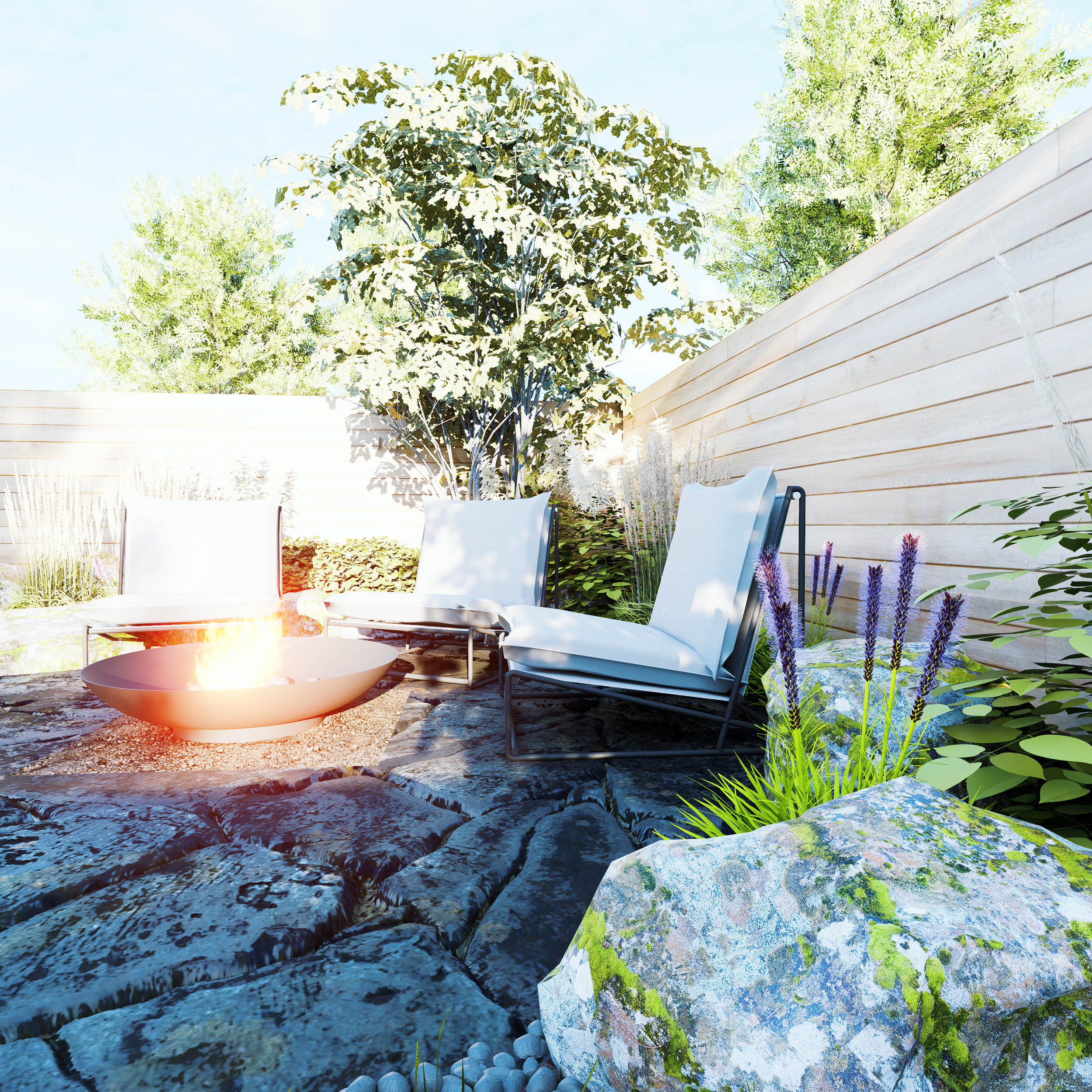 Little Muskoka – the first official project from our Design in a Day Experience. Working with the existing site conditions and a client eager to embrace its possibilities, we crafted a simple yet impactful plan. With Muskoka vacations becoming increasingly costly, our clients asked us to bring the cottage life to them. Fireside lounging, natural flagstone patios, and lush gardens create the perfect little slice of Muskoka at home.